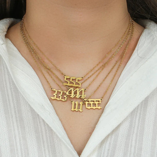 Angel Number Necklace Pendant 18k Gold Plated Stainless Steel Necklace